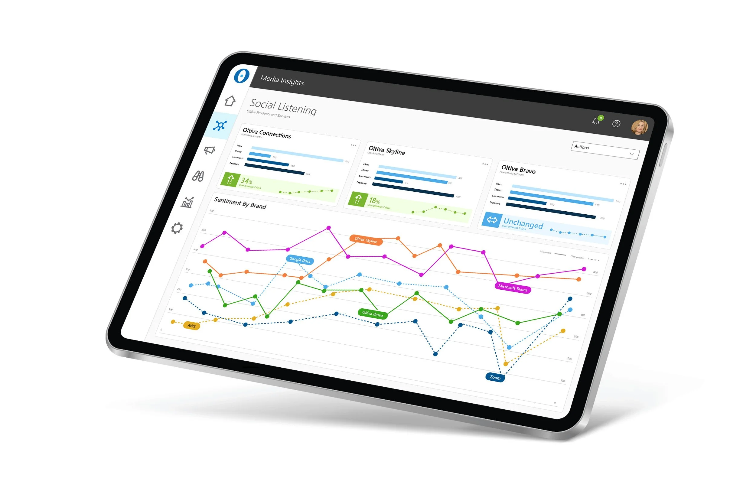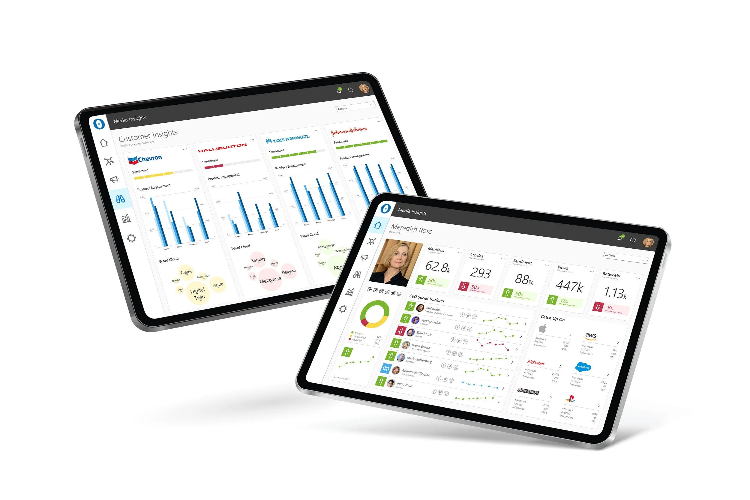 I designed this project concept for an executive’s all-in-one dashboard. It would have been implemented as a series of Power BI visualizations pulling data from the web to give users quick access to the latest social listening and industry insights.
