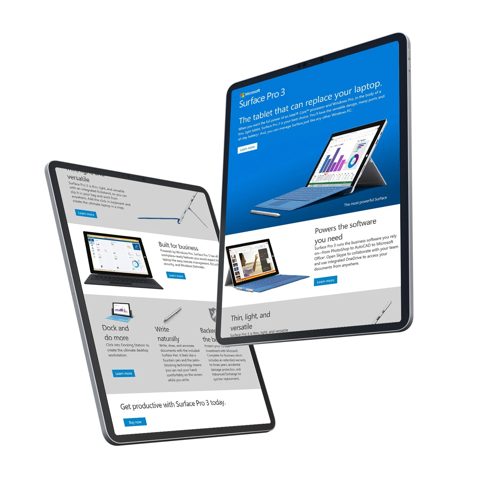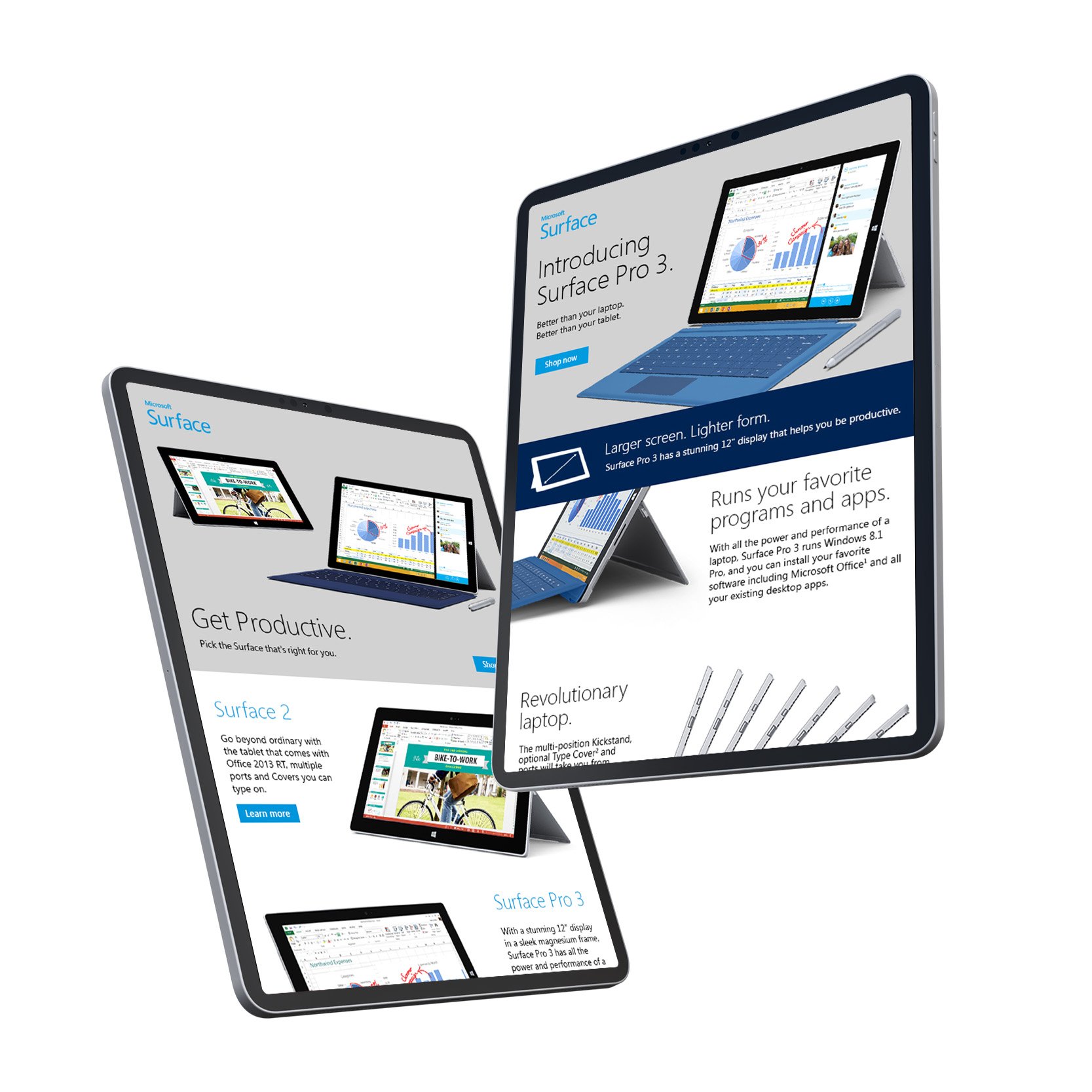Microsoft’s Surface Pro 3 launch campaign was conceived to show the productivity and versatility of their new tablet. I lead a team of copywriters, UX designers, and motion designers to bring this cohesive campaign to life.