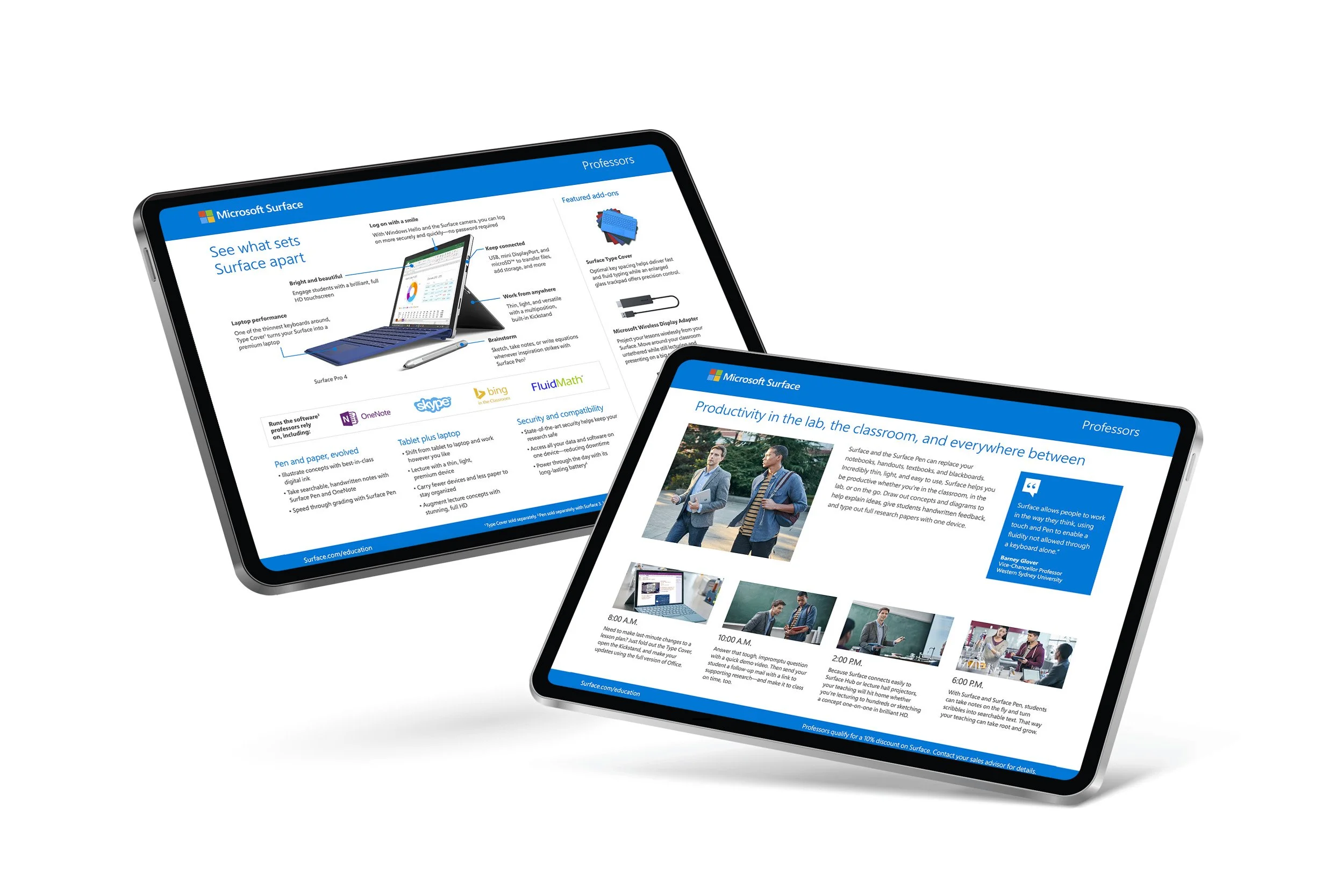 Lastly, a polished and engaging set of sales materials empowered Microsoft sellers with the info and offers they needed to close the deal when selling devices in bulk. Battlecards with a “day in the life” story were showcased by sellers on Surface devices when selling Surface devices. Compete synergy.